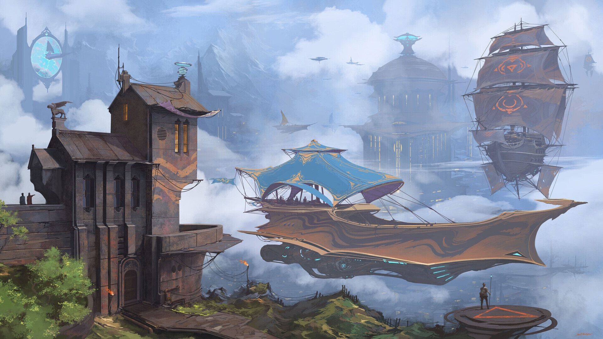 Леонид Михайлович, во всю крутил головой рассматривая необычную архитектуру и непривычных разумных. Нам как на подбор попадались такие колоритные товарищи, каких на земле не встретить. Да и пролетевший над нами корабль, производил впечатление. Мы несколько минут стояли на небольшой площадке с которой открывался отличный вид на площадь и портальную площадку в ее центре.