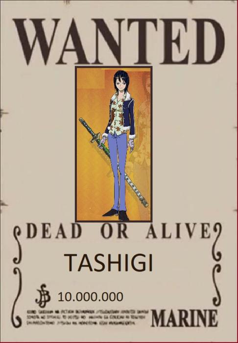 Третьей на листовке была Ташиги. Десять миллионов. Одета на листовке в джинсы, рубашку и куртку, в руках держит катану. После передачи листовки адресату девушка выпала из мира находясь в полной растерянности.