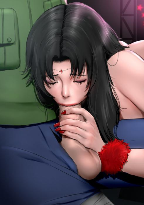 — Разве ты не видишь? Куренай как и ты посасывает сигару, правда кожаную, а не такую как ты, — ухмыльнулся я, продолжая медленно насаживать ротик алоглазки на свой член.