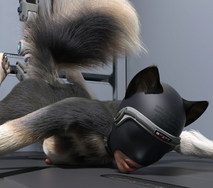 Когда команда повторяется во второй раз, Сюзи удивляется, что ее не наказывают, как будто система понимает, что она не знает, что делать. Но она не сдается. Прямо перед ней, посреди ее комнаты, мелькает другая собака. Или, по крайней мере, грубое ее подобие - голограмма, спроецированная гарнитурой на ее зрительную кору. Как только Сьюзи смотрит на нее, слегка полупрозрачная собака смещает верхнюю часть тела вниз и поднимает бедра, поднимая хвост, чтобы обнажить промежность.