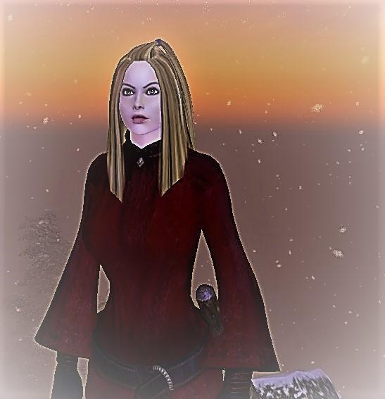 Ради разнообразия сегодня утром она надела на себя черную безрукавку с мехом, и черную короткую юбку. Однако пройдя примерно сотню метров, она решила вернуть свою малиновую робу Мифического рассвета, так как у нее была более утепленная ткань и длинные рукава.