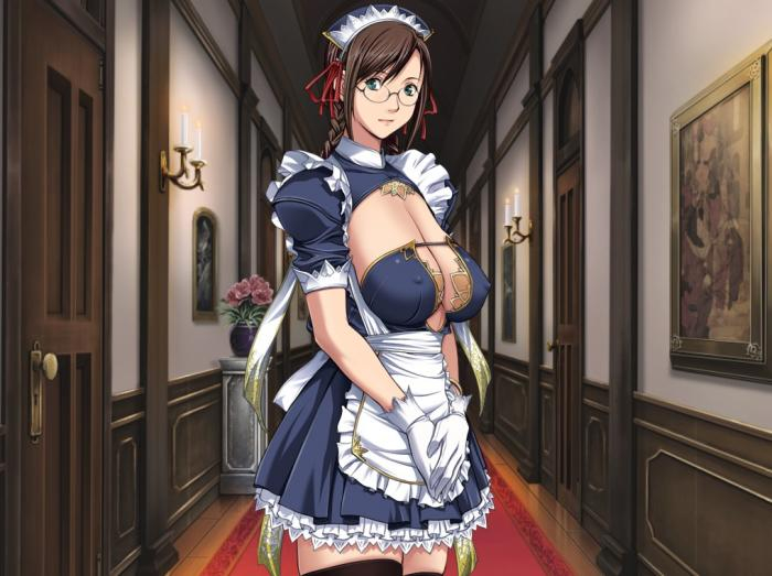 Она надевает последнюю вещь, фартук, и ее наряд горничной завершен. Он идеально ей подходит.