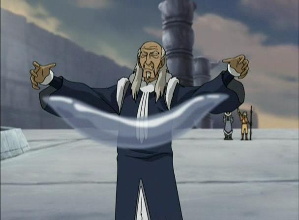 Также была возможность увидеть там ещё одного персонажа, что фигурировал в сериале. Этим человеком является мастер воды Пакку, сейчас его голова только начинает седеть, но лупит он учеников будь здоров. Кстати, в мультфильме показали, только одного мастера воды Пакку, но здесь их намного больше, даже были старички, что успели пройти войну.