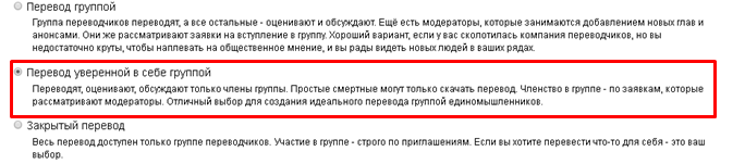 Ограничения свободы комментирования внутри главы можно выбрать при добавлении главы, в пункте Особые права доступа. (подробнее о добавлении глав смотрите в разделе FAQ Как создать первую главу в переводе)