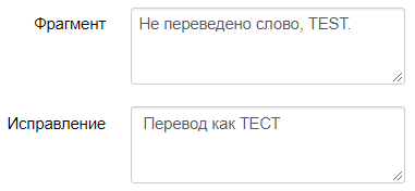 Заполнить поле «Фрагмент» (по умолчанию, в поле фрагмент вписывается выделенное слово) и заполнить поле «Исправления» (по умолчанию оно пустое, там пользователь может вписать свой вариант исправления, так как он считает правильным)