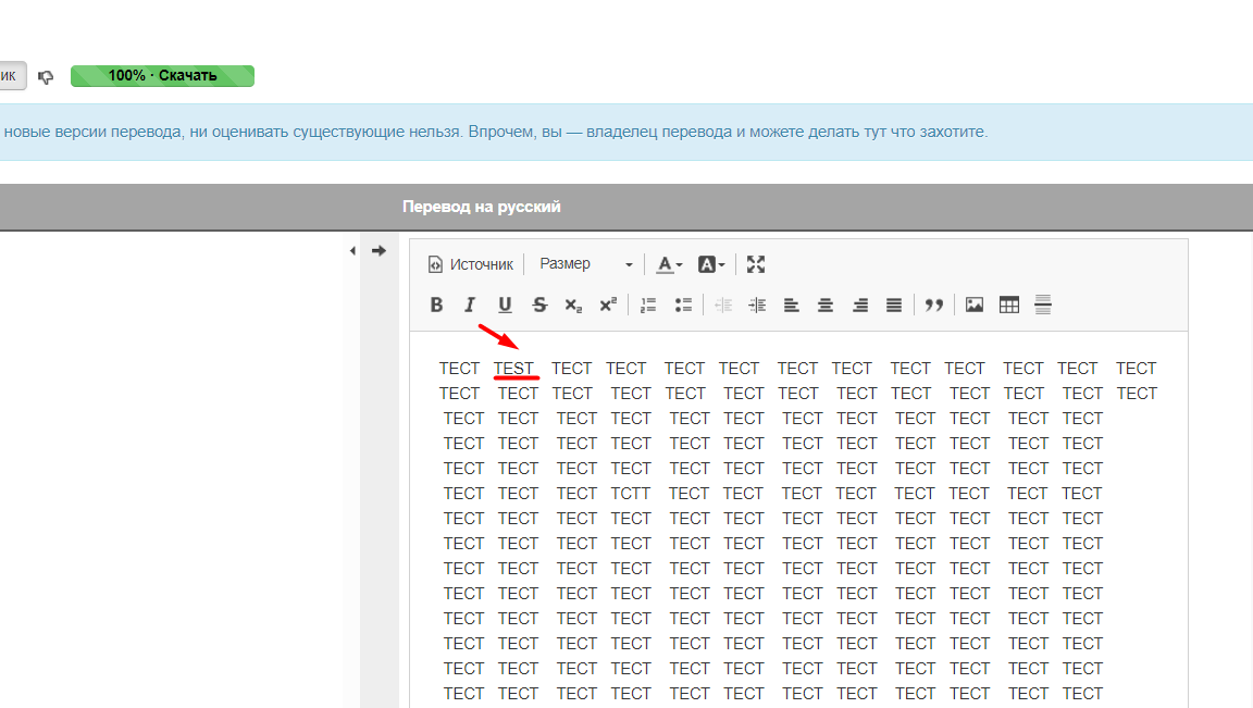 После исправления, необходимо сохранить текст внизу перевода кнопкой «