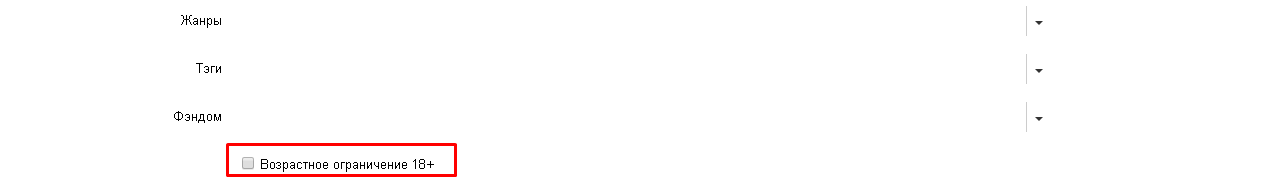 Важно!!! Если ваша работа, содержит сексуальные или насильственные сцены, описания употребления наркотических веществ, романтические отношения между персонажами одного пола (пропаганда ЛГБТ), сцены с описанием аморального поведениями и т.п. необходимо проставить галочку «Возрастное ограничение 18+»