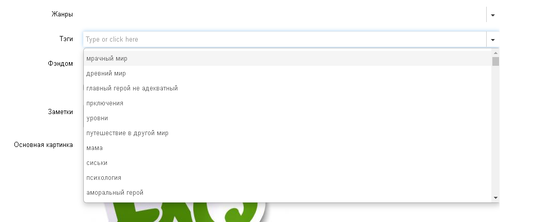 Выбрать жанр, тэг и(или) фэндом из списка или вписав интересующий: