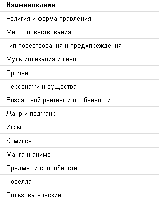 Фэндом – стоит использовать в том случаи, если работа написана в хорошо известной серии произведений, или персонажи-участники вашего рассказа, являются детально проработанными персонажами из других рассказов: к примеру, если в ваше рассказе Гермиона Джин Грейнджер ведет не истовый бой с Ичиго Куросаки, на корабле «Гоинг Мерри» по среди океана, где стоит огромный Кайдзу, то стоит указать следующие Фэндомы: Гарри Поттер, Блич, One Piece, Тихоокеанский рубеж. Так пользователю проще понять в какой вселенной происходят события, и что за персонажи участвуют в них, а автору можно уделить меньше внимания на детализацию мира или персонажа... Вы можете создать собственный фэндом, но по рассмотрению модерации, его могут изменить или удалить.