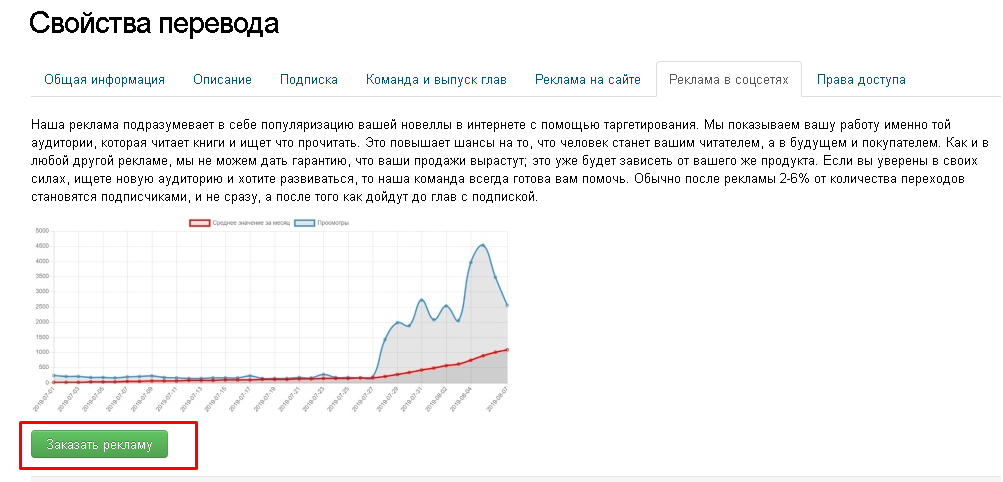 О «Реклама в соцсетях» Нажимая кнопку "Заказать рекламу", в пункте «Реклама в соцсетях» свойств перевода (подробнее о свойств перевода смотрите в разделе FAQ Свойства перевода), пользователя переводят на форму оформления заказа.