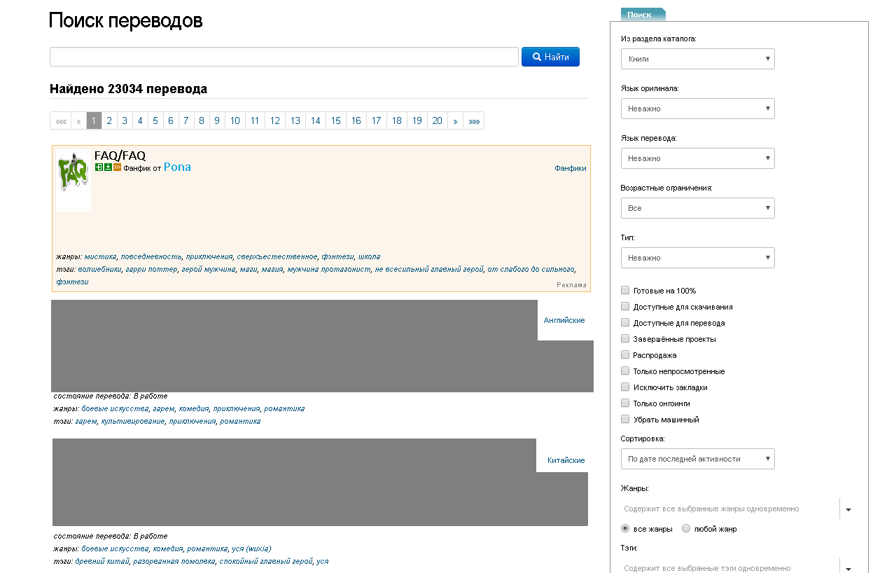 Обратите внимание!!! Найдено 2 перевода, но отображается три, работа что обведена красным прямоугольником, является рекламой (подробнее о рекламе смотрите в разделе FAQ Реклама вашего рассказа)