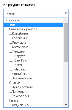 В данном фильтре, можно выбрать раздел каталога: