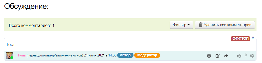 2)Пункт меню «Оффтоп» выводит комментарии с пометкой «