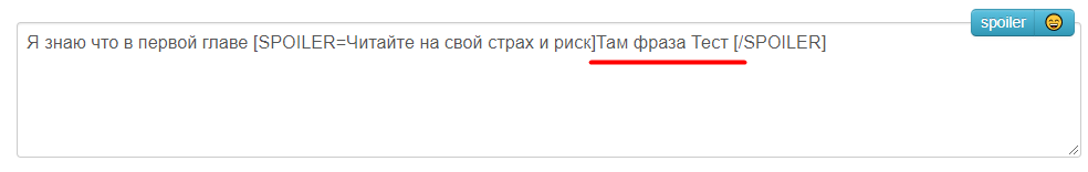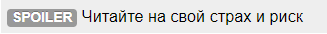 квадратными скобками ( [SPOILER=Читайте на свой страх и риск]Вот тут писать то что хотели скрыть под защитой «SPOILER» функции [/SPOILER]) написать свой комментарий.